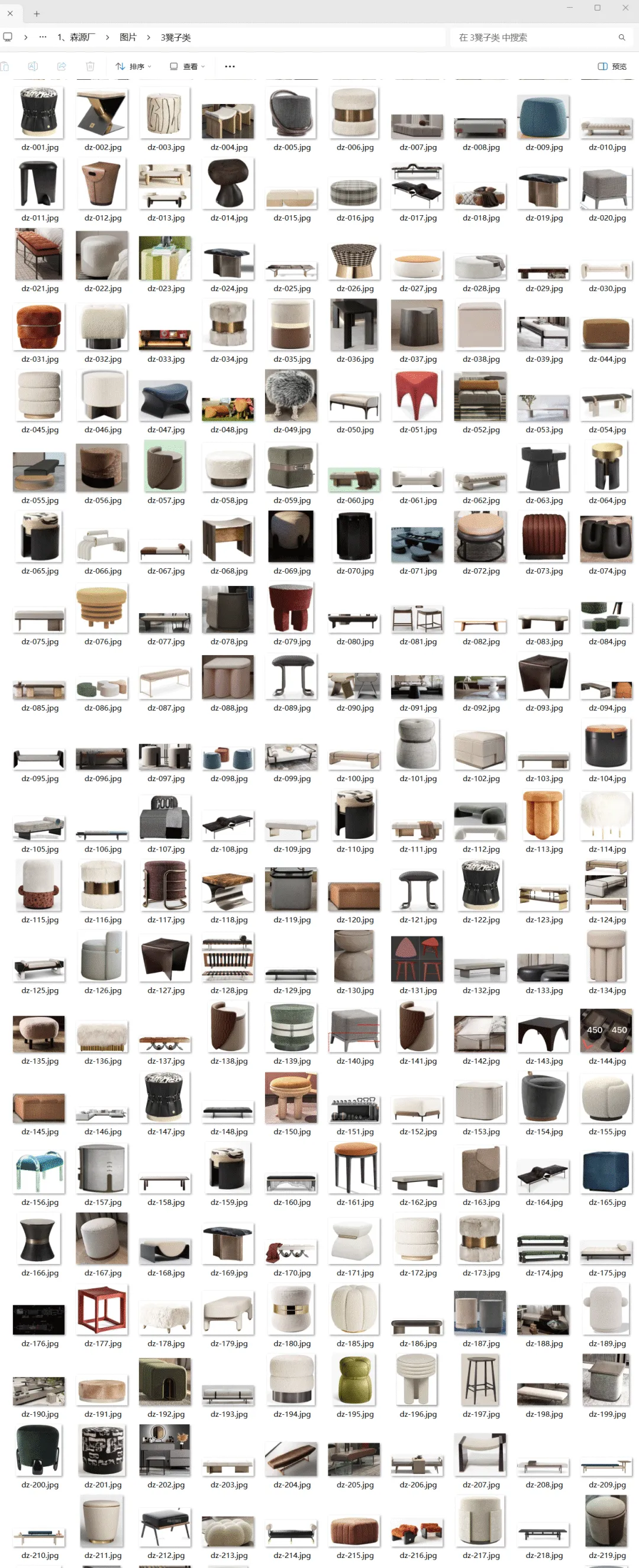 《凳子类:酒店活动家具设计图纸1168张》数量统计