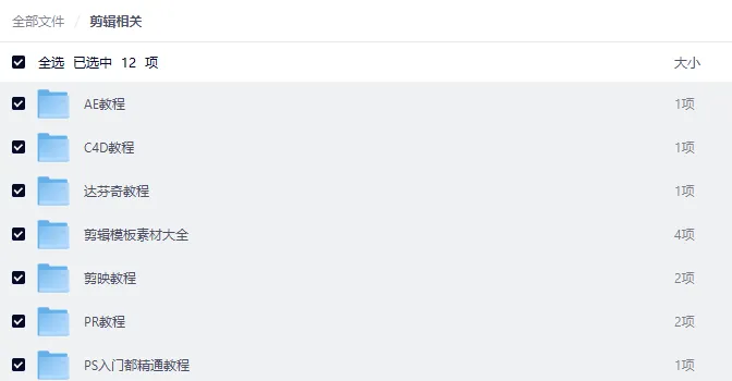 这些素材和教程都按类别整理好了,大家可以直接保存到自己的网盘里,后续剪辑需要什么就直接取用,不用再到处找资源。