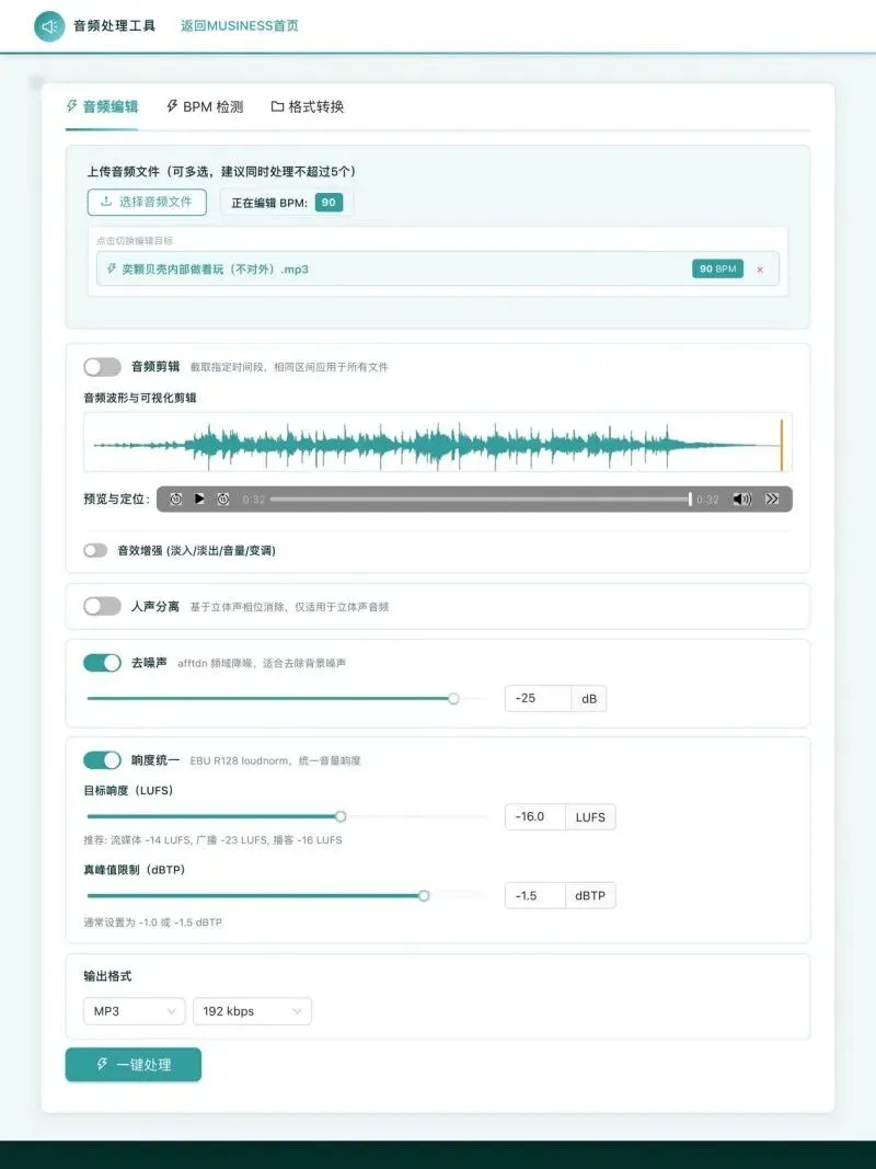 以前要下 3–5 个软件、开几个会员才能做的事,现在一个网站、一键搞定,新手也能秒变 “音频后期大神”: