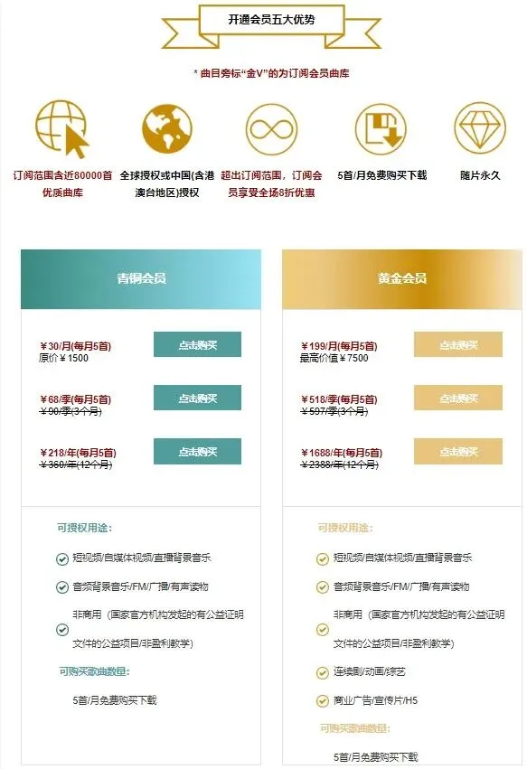 个人自媒体:30 元解锁 8 万首金 V 曲库,每月再送 5 首免费下载