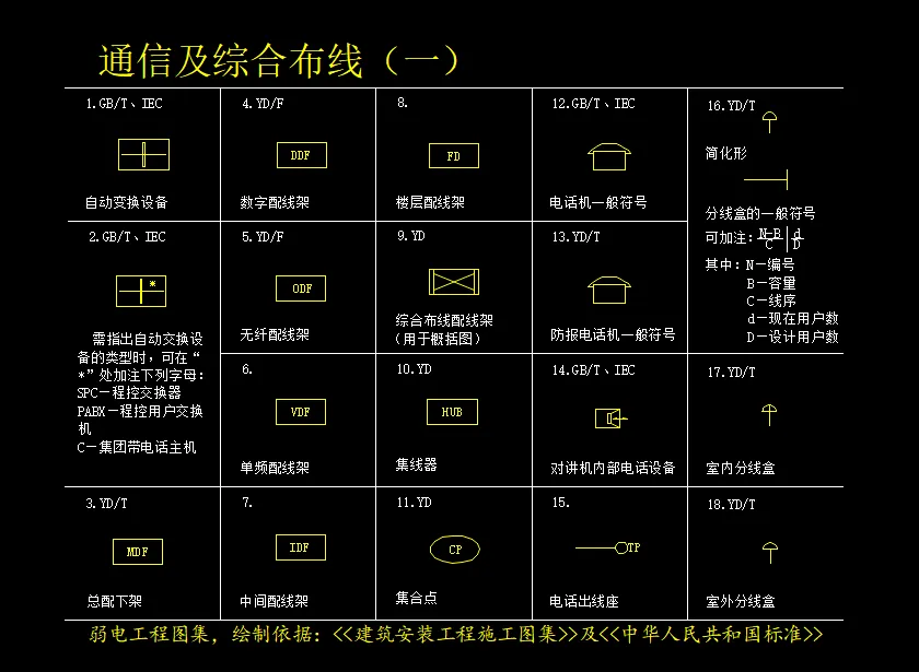 要看懂工程图纸都有图纸设计说明,各个字母代表什么意思都有,弱电标示大部分都有什么: