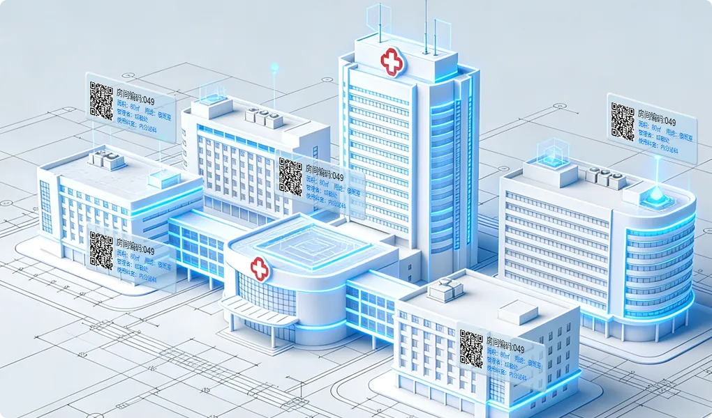 建立统一的空间身份标识:为每一个房间生成唯一的二维码,作为其"数字身份证"。扫码即可查看该房间的编号、面积、用途、管理者、使用科室等所有静态信息。