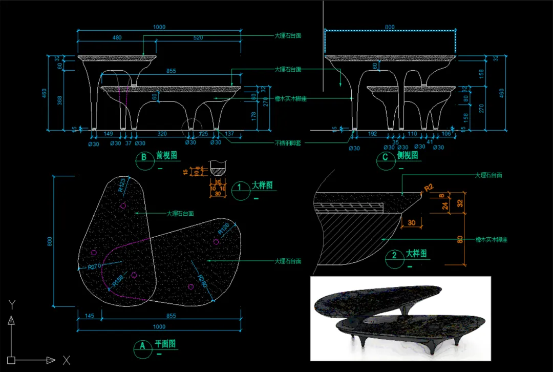 版面有限,只展示前面一小部分茶几类的CAD图纸+配套图片文件资料!