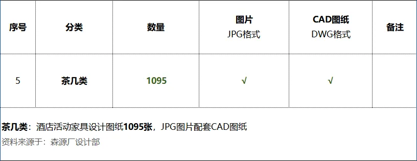 《茶几类:酒店活动家具设计图纸1095张》数量统计