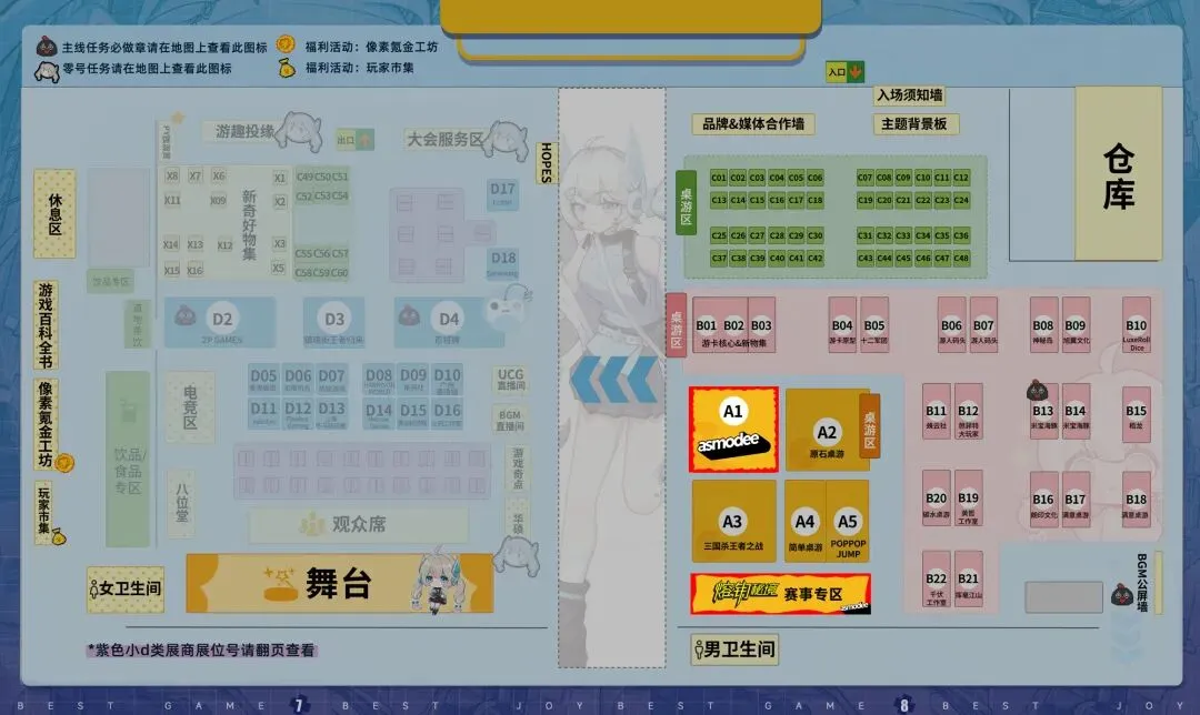 具体展台位置为A1,届时玩家从桌游区入口直行,即可找到我们的展台: