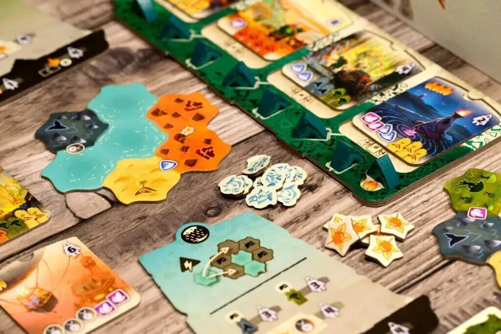在这款以路线规划和区控为主打玩法的游戏中,2-4名玩家将尝试通过打出卡牌,执行行动来布置营帐,占据有利地形,收集资源等一系列行动,以获得对应的得分来赢取最终胜利。