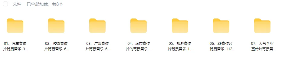软件介绍:中文详细分类的关于汽,校园,广告,城市,旅游,政府,大气宣传片BGM。