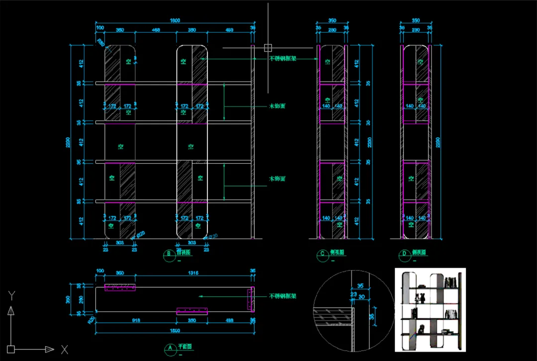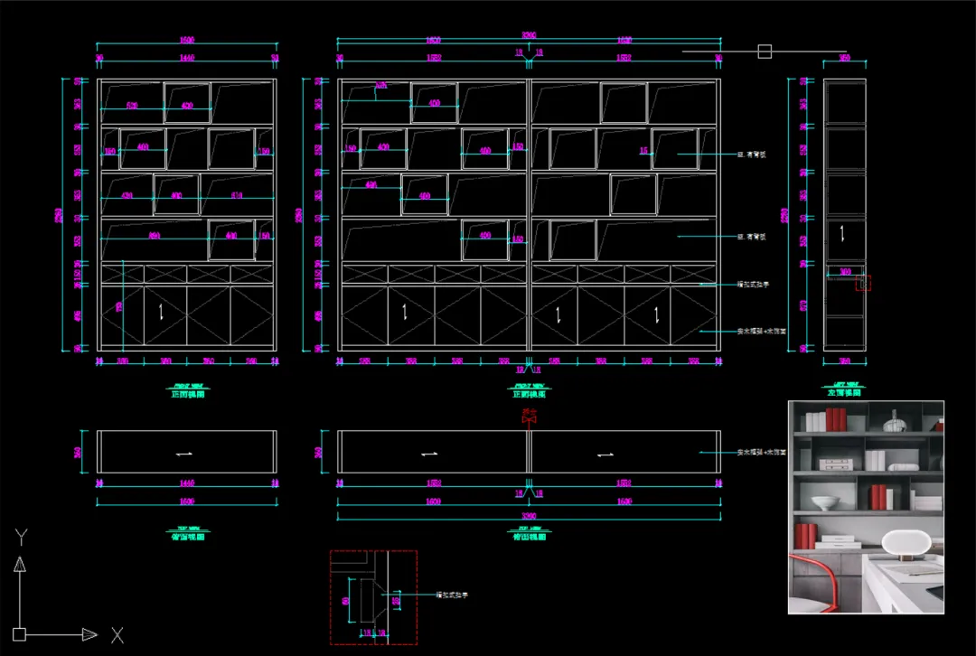 版面有限,只展示前面一小部分书架类的配套图片!图片与CAD图纸是配套的!